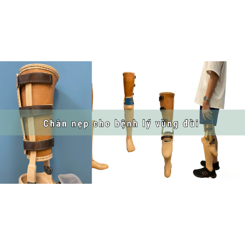 Chân nẹp được đúc bằng nhựa tổng hợp kết hợp với ống nối cụm chỉnh và bàn chân giả. Giúp cân bằng chiều cao cho bạn.