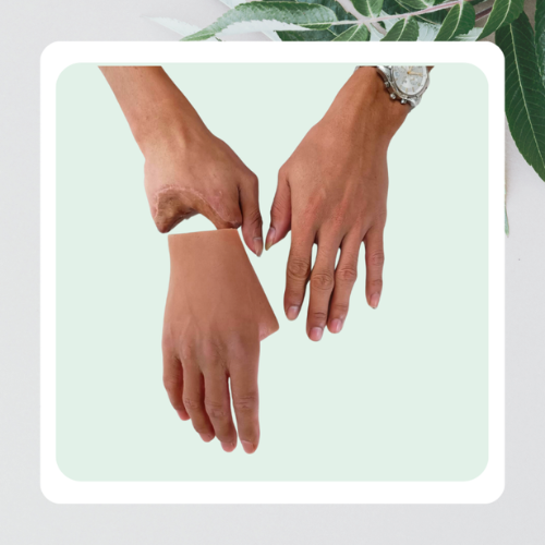 Một số sản phẩm sẽ được thiết kế tùy chỉnh theo yêu cầu về thẩm mỹ của khách hàng (màu da, gân tay, lông, nếp nhăn) để tạo dáng giống tay lành nhất có thể.